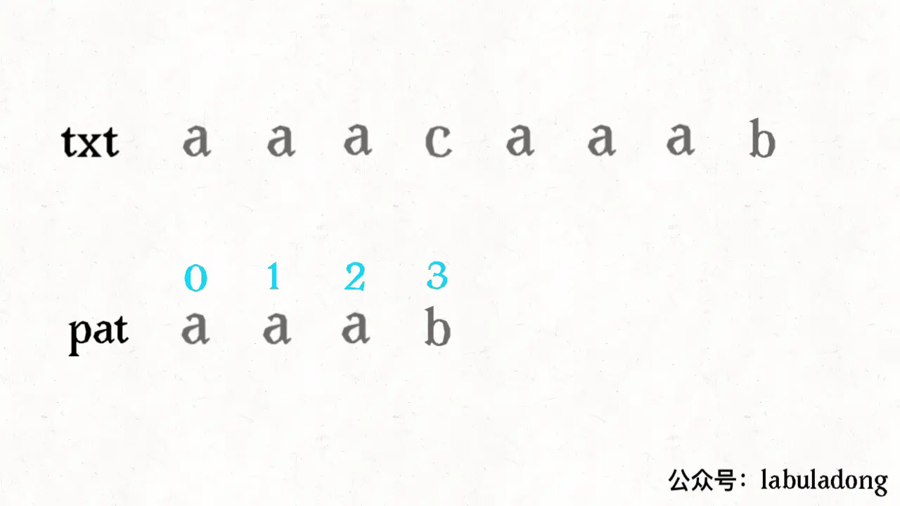 可以发现,KMP 算法在失配时“将模式串移到了适配位置的后方”。