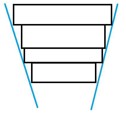 如图,如果一个盘子能够通过第 $2$ 个管道,那么其宽度一定小于第 $2$ 个管道的深度,也就小于了第 $3$ 个管道的宽度。那么我们就可以把原序列变为一个单调不升序列(如图):