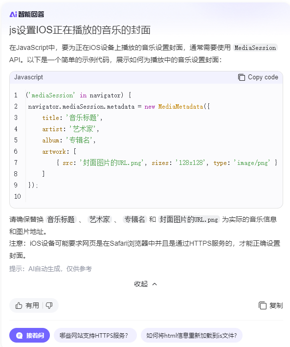 { src: '封面图片的URL.png', sizes: '128x128', type: 'image/png' }
