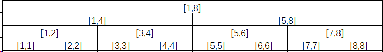 令 $mid=\left\lfloor\dfrac{t[i].l+t[i].r}{2}\right\rfloor$,那么 $t[i]$ 的左子节点维护区间 $[l,mid]$ 的信息,右子节点维护区间 $[mid+1,r]$ 的信息。