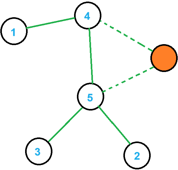 如图,答案合并至 $4,5$ 时,完全可以构造一个不存在的节点(图中橙色节点),并连接 $4,5$,将答案合并到父节点橙色节点上,则最终答案也是一样的。