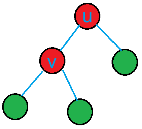 $u$ 原本可以添加 $2$ 个节点,现在因为有了子节点 $v$,因此对答案的贡献减少了 $1$。但是 $v$ 对答案有大小为 $2$ 的贡献,因此 $n=k+1$ 时的答案为 $n=k$ 时的答案加 $1$,即 $k+1=n$。