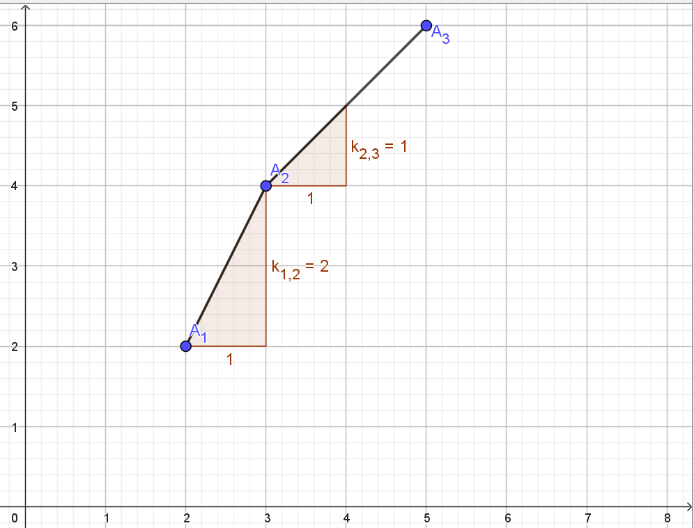 \[x_i\leq k_{j_1,j_2}\]设三个点 $A_1,A_2,A_3$,如果出现了如图所示的情况,则有 $A_2$ 一定不是最优的。(即 $k_{2,3}\leq k_{1,2}$)