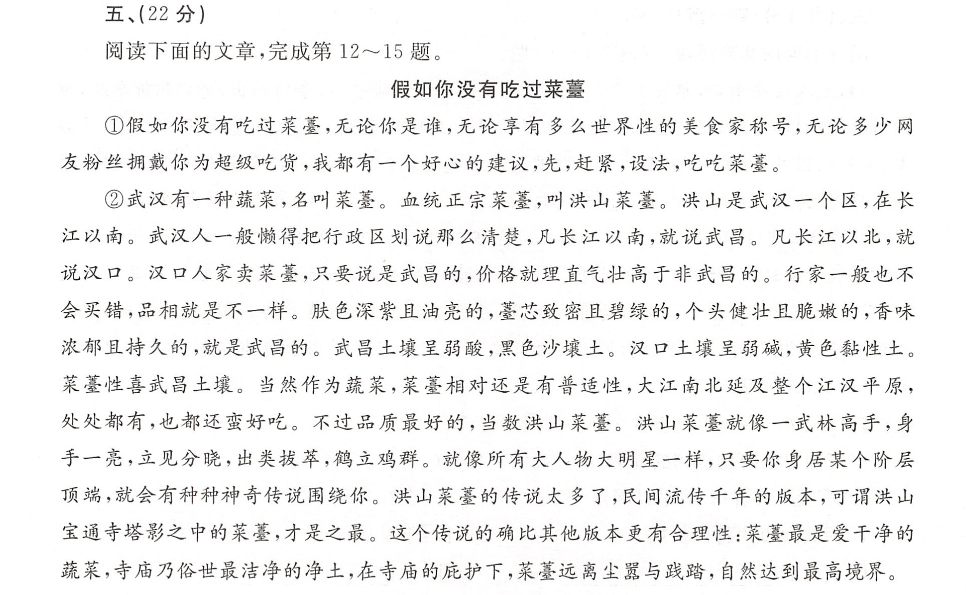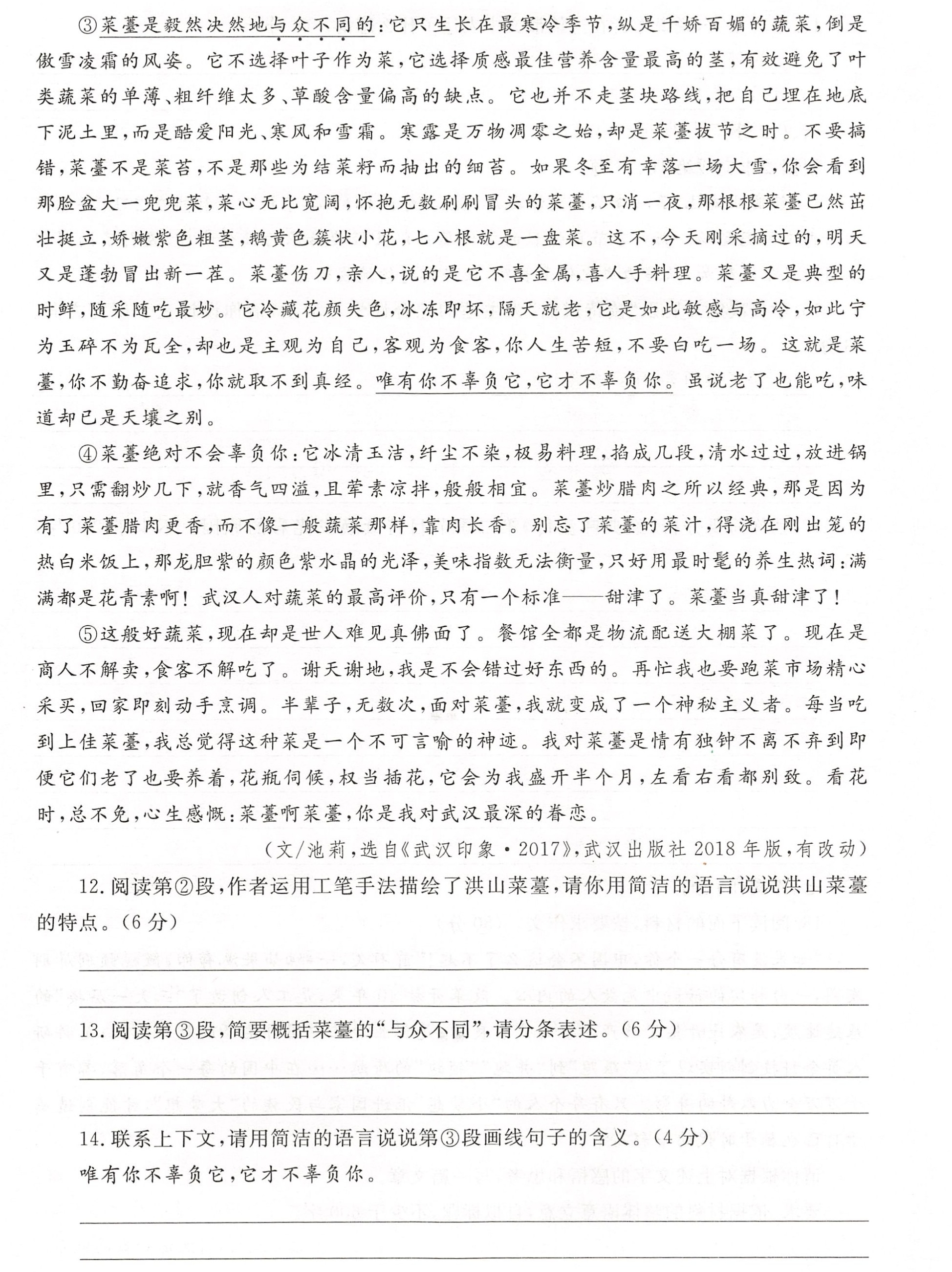 《假如你没有吃过菜薹》,池莉《武汉印象·2017》,武汉出版社 $2018$ 年版。附大阅读: